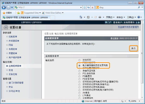 选择 [电子邮件接收历史记录列表],然后单击 [执行]。