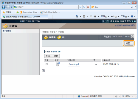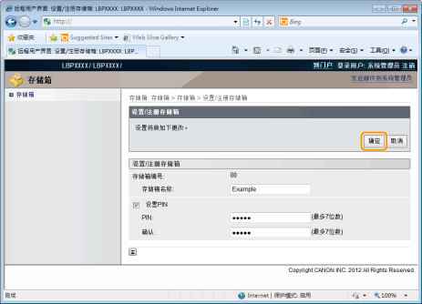 如果存储箱指定了密码,则输入密码,然后单击 [确定]。