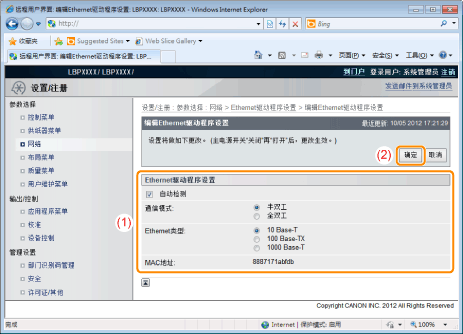 使用 [Ethernet类型],选择与所使用网络环境匹配的以太网类型。