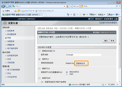 为了设置 TLS 认证必须预先在打印机上注册认证使用的密钥和证书或 CA 证书。
