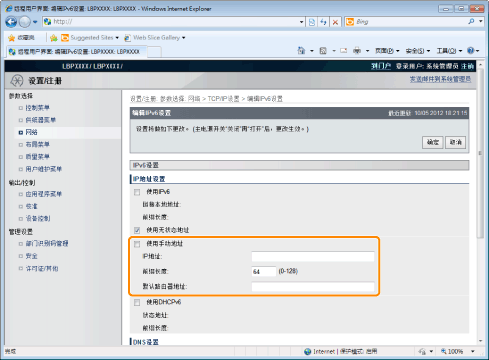无法在 [IP地址] 和 [默认路由器地址] 中输入的地址以“ff”开头的地址(多播地址)