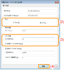 在 [remote queue name] 中输入任意打印队列名称,并在 [Hostname of Remote Server] 中输入打印机的 IP 地址或名称。
