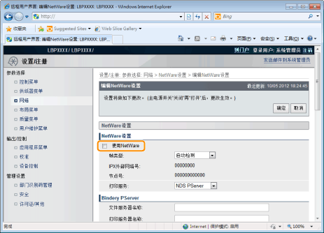 清除 [使用NetWare] 复选框时在 NetWare 网络上检测不到打印机。