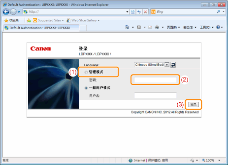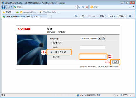 如果要使用 SSL 加密通信,请输入“https://<打印机的 IP 地址或名称>/”。如果出现 [安全警报] 对话框或其它对话框,请按照信息中的说明进行操作。