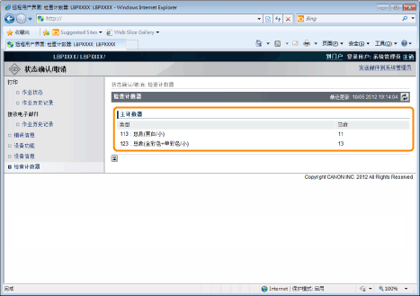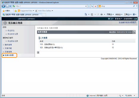 从 [状态确认/取消] 菜单中选择 [检查计数器]。