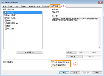 清除了 [允许选择配置文件] 和 [允许编辑设置] 复选框时,会限制选择和编辑“配置文件”。