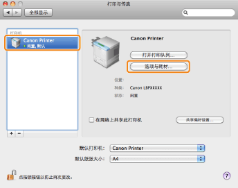 选择打印机 → 单击 [选项与耗材]。