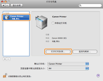 选择打印机 → 单击 [打开打印队列](或 [打印队列])。