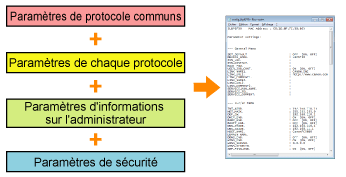 En accédant au serveur FTP de l'imprimante, vous pouvez définir les paramètres réseau, les paramètres de sécurité, etc. Comme les options de paramètre sont répertoriées dans un fichier, vous pouvez en définir plusieurs à la fois.