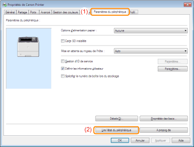 Si vous ne parvenez pas à récupérer automatiquement les informations du bac d'alimentationSélectionnez l'option d'alimentation papier installée sur votre imprimante sous [Options d'alimentation papier].