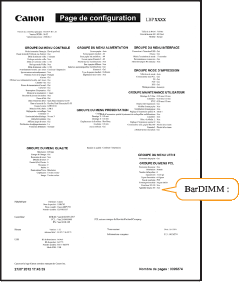 Il s'agit d'un exemple de page de configuration. Son contenu peut être différent de celui de la page de configuration imprimée pour votre imprimante.