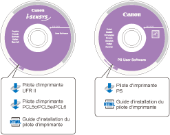 Vous installez le pilote d'imprimante à partir du CD "User Software CD-ROM".