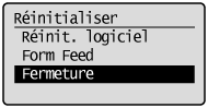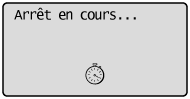 Si l'arrêt est en cours, après avoir supprimé le travail à l'aide d'une réinitialisation logicielle, exécutez à nouveau l'arrêt Si l'arrêt n'est pas en cours, appuyez sur [ ] ( : En ligne). |