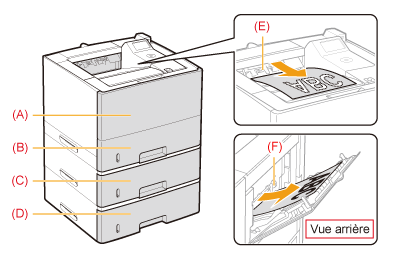 La capacité papier réelle dépend de l'environnement d'installation du format ou du type de papier utilisé.