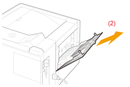 Ouvrez le bac de sortie inférieur, comme indiqué sur la figure.