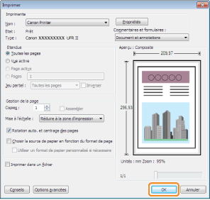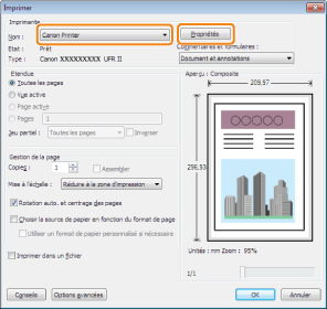 Pour plus d'informations sur les fonctions d'impression disponibles, reportez-vous à "Fonctions d'impression" ou à l'aide en ligne. (Voir "Affichage de l'aide en ligne".)