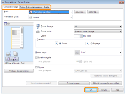 Le [Style d'impression] sous l'onglet [Finition] est paramétré par défaut sur [Impression recto verso].