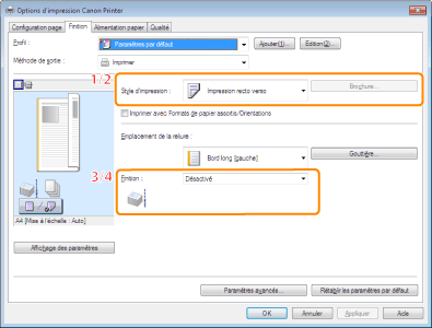 Imprimer une ou deux faces du papier. [Style d'impression] a pour valeur par défaut [Impression recto verso].