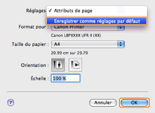 Sélectionnez [Enregistrer comme réglages par défaut] sous [Réglages] → cliquez sur [OK].
