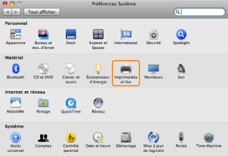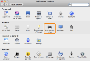 Ouvrez [Préférences Système] → cliquez sur [Imprimantes et fax].