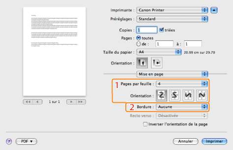 Les éléments affichés peuvent varier en fonction du système d'exploitation, du type de pilote d'imprimante et des fonctions.