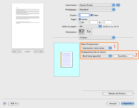 Imprimer une ou deux faces du papier. [Style d'impression] a pour valeur par défaut [Impression recto verso].