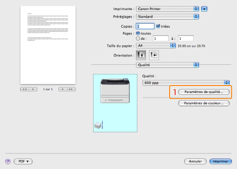 Les éléments affichés peuvent varier en fonction du système d'exploitation, du type de pilote d'imprimante et des fonctions.