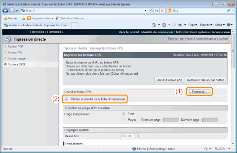 Vous pouvez imprimer plusieurs pages du fichier XPS sur une même feuille de papier.