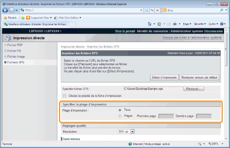 Sélectionnez [Pages], puis entrez le numéro de la page de début et celui de la page de fin pour préciser l'étendue d'impression.
