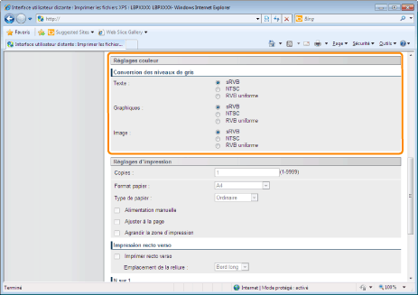 Sélectionnez la méthode de conversion des données d'impression couleur en niveaux de gris pour l'impression.