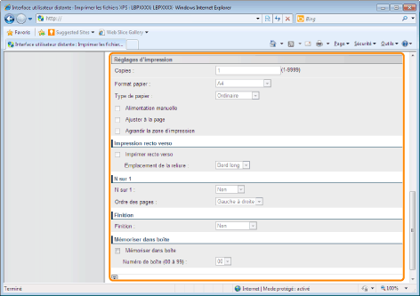 Si la case [Choisir la priorité de la fiche d'impression] est cochée, certains éléments définis via l'Interf dist ne sont pas disponibles. Pour utiliser tous les paramètres d'impression définis via l'Interf dist, décochez la case [Choisir la priorité de la fiche d'impression].