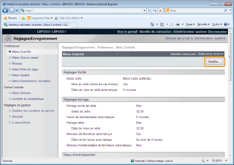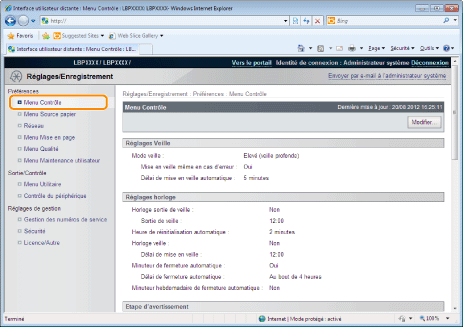 Sélectionnez [Menu Contrôle] dans le menu [Préférences].