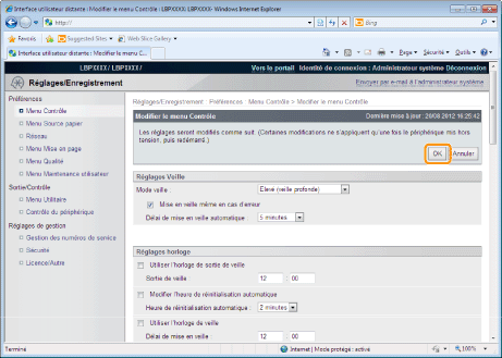 Ce délai peut être défini à l'aide de l'interface utilisateur à distance.