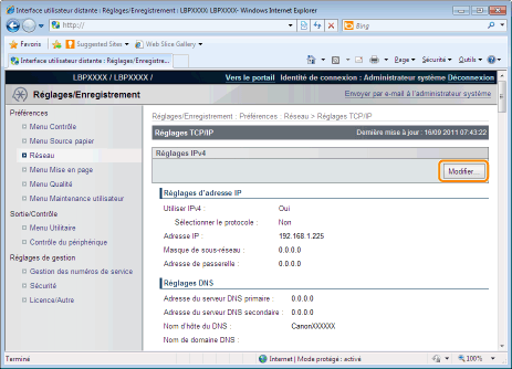 Cliquez sur [Modifier...] dans [Réglages IPv4].