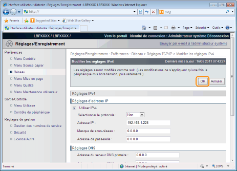 Saisissez l'adresse IP de l'imprimante.