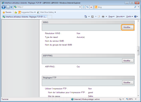 Cliquez sur [Modifier...] dans [WINS].