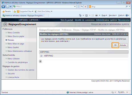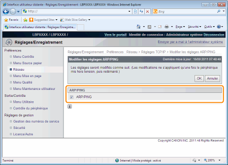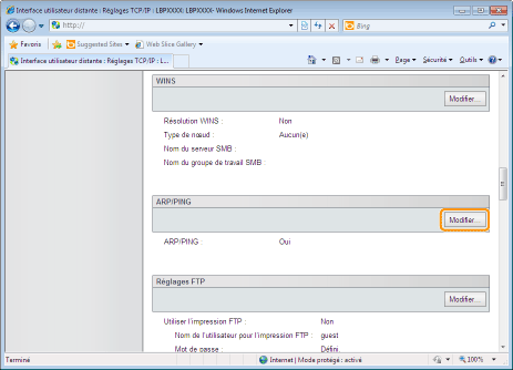 Cliquez sur [Modifier...] dans [ARP/PING].