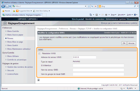 Paramètres WINS