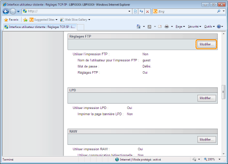 Cliquez sur [Modifier...] dans [Réglages FTP].