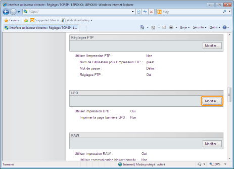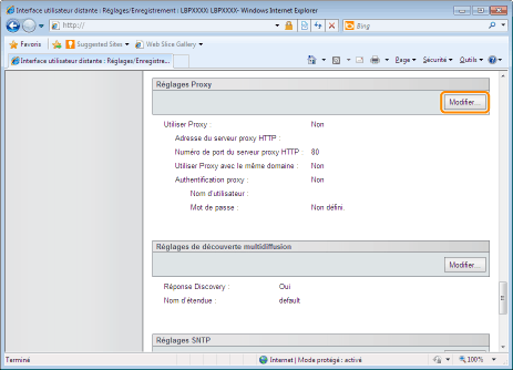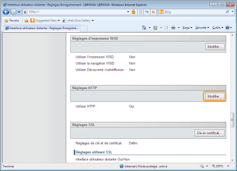 Cliquez sur [Modifier...] dans [Réglages HTTP].