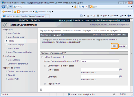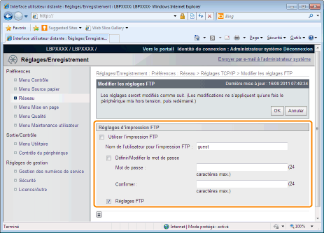 Définissez l'impression FTP.