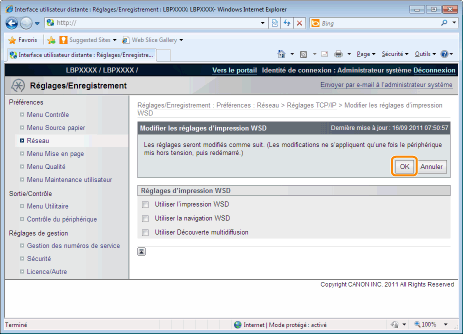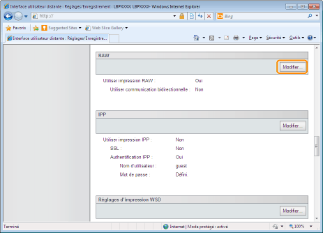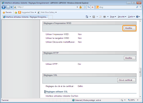 Cliquez sur [Modifier...] dans [Réglages d'impression WSD].