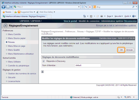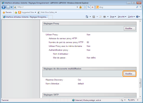 Cliquez sur [Modifier...] dans [Réglages de découverte multidiffusion].