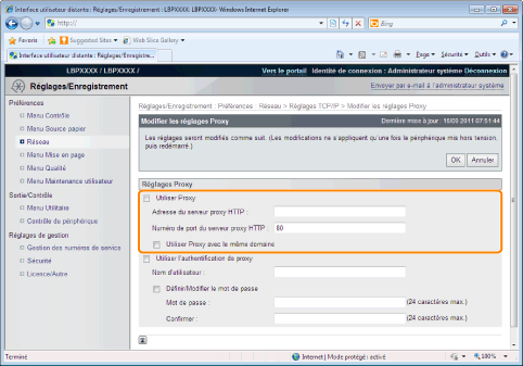 Cliquez sur [Modifier...] dans [Réglages Proxy].