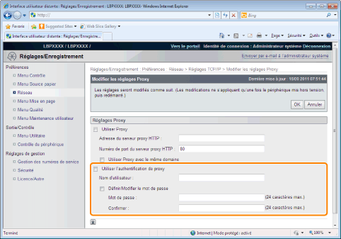 Si vous utilisez les fonctions d'authentification du proxy