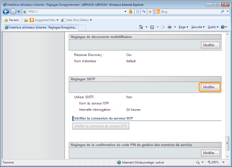 Cliquez sur [Modifier...] dans [Réglages SNTP].