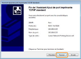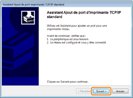 Utilisation de LPDLorsque vous installez le pilote d'imprimante en appliquant la méthode ci-dessus, RAW est spécifié comme application d'impression à utiliser. Pour utiliser LPD, installez le pilote d'imprimante en suivant la procédure ci-dessus, puis modifiez le port.