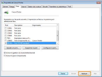 Suppression d'un port inutileSélectionnez le port inutile dans l'onglet [Ports], puis cliquez sur [Supprimer le port].
