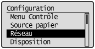 Appuyez sur [  ] (: Paramètres), sélectionnez [Réseau ] à l'aide de [ ] et de [ ], puis appuyez sur [OK].