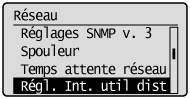 Sélectionnez [Régl. Int. util dist] à l'aide de [  ] et de [  ], puis appuyez sur [OK].